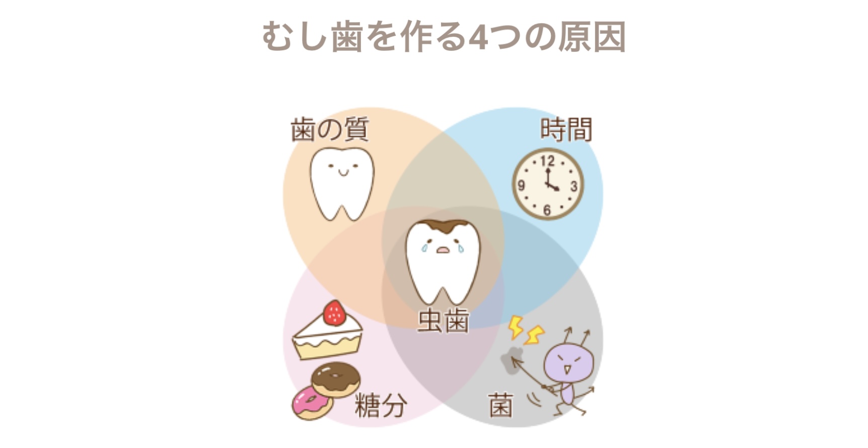 つまりこの4つが揃うことを少なくすればむし歯を防ぐことができるのです